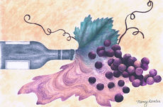 “Spilled Grapes” Wine Box - layered paper diorama, 4" x 6" wood box frame
